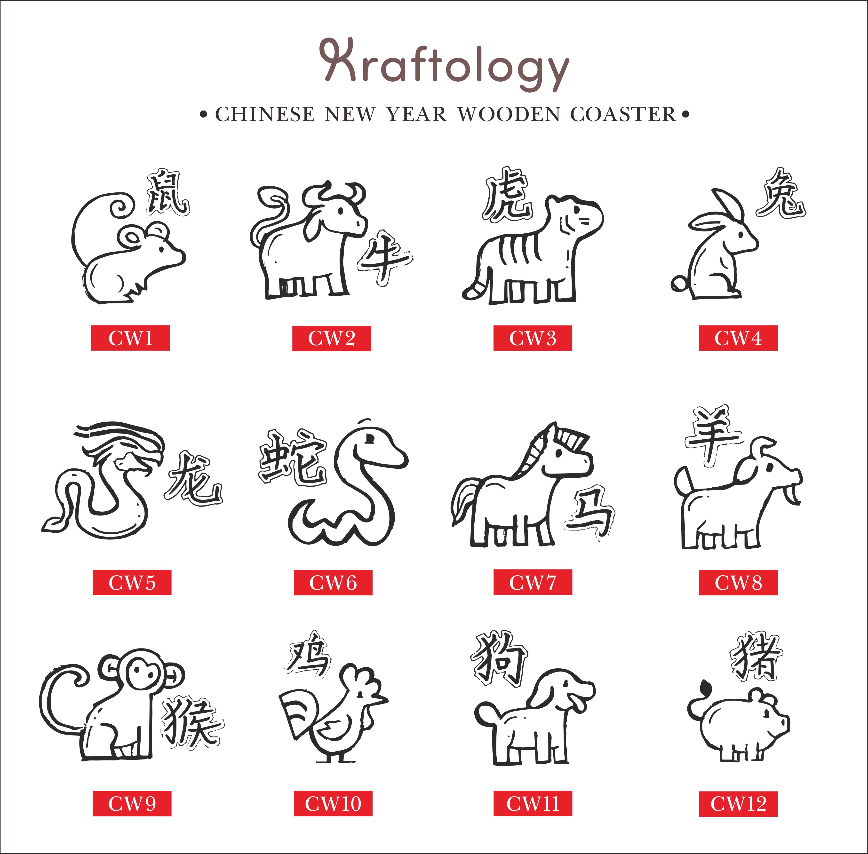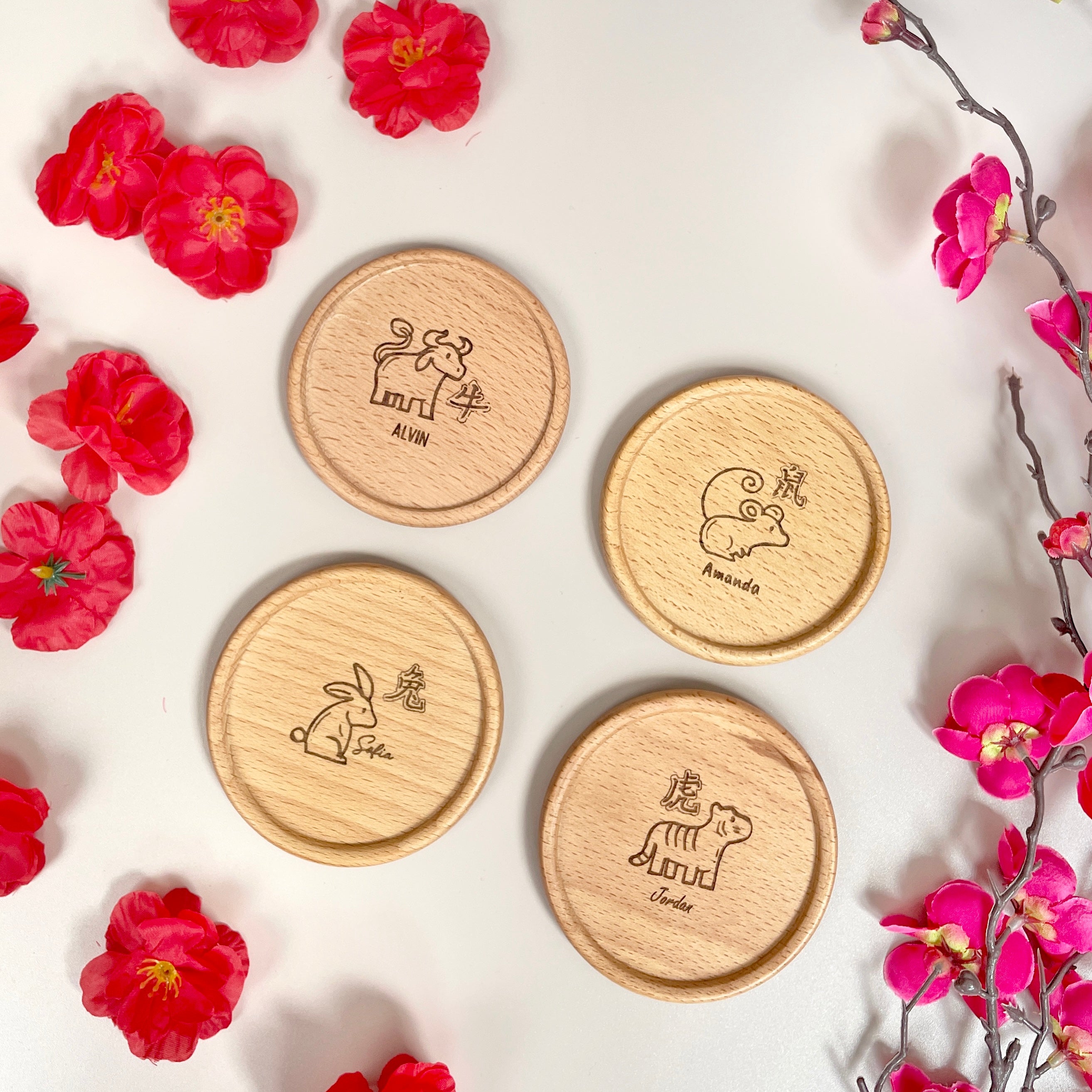 Customised Chinese New Year- Zodiac Wooden Coaster with name engraving